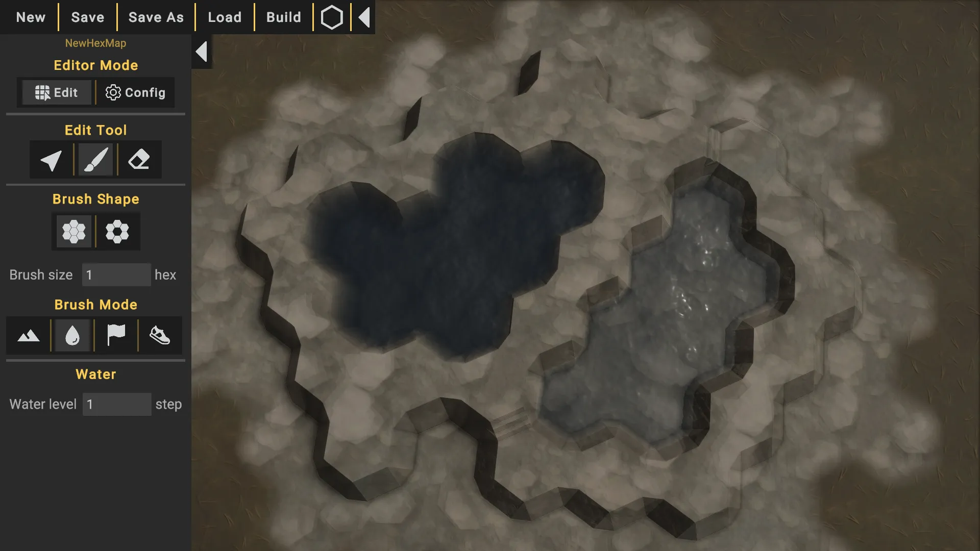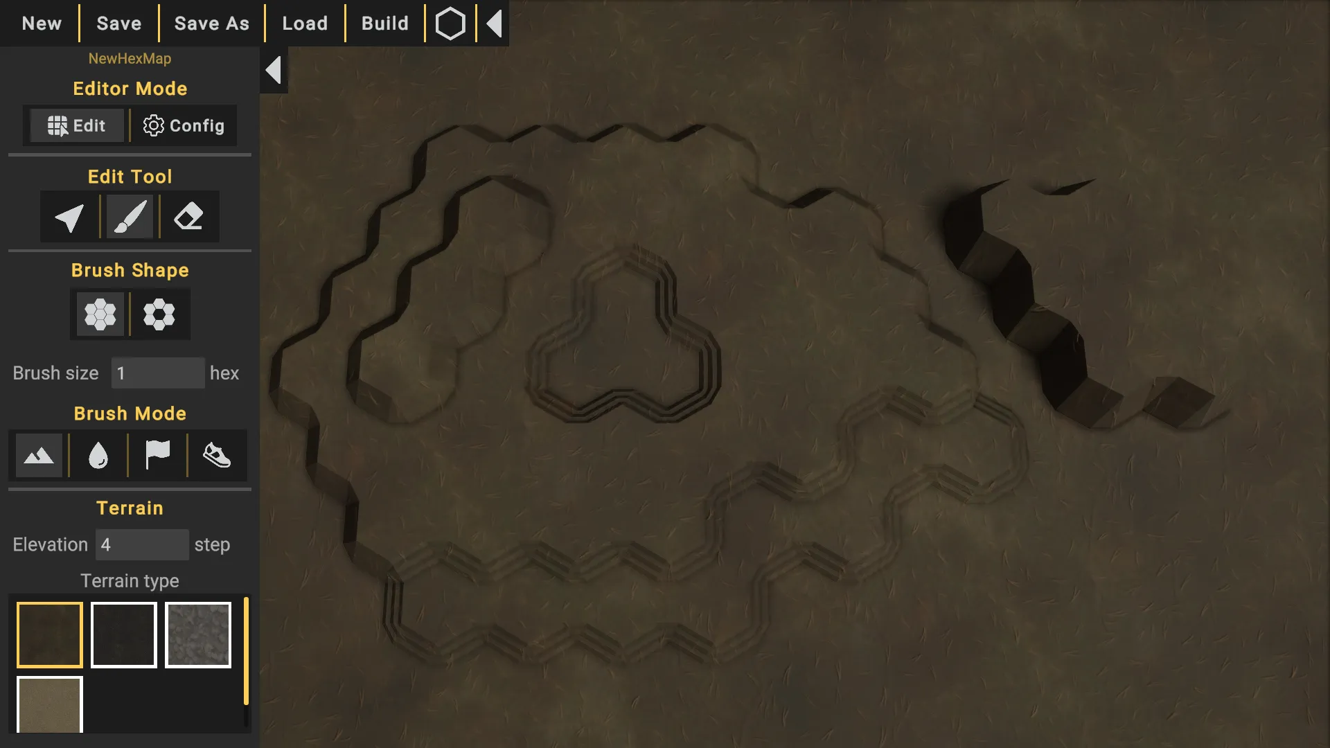 Map projects can be created, saved and loaded. Loaded maps can be built which creates a map binary that can be used inside the game.