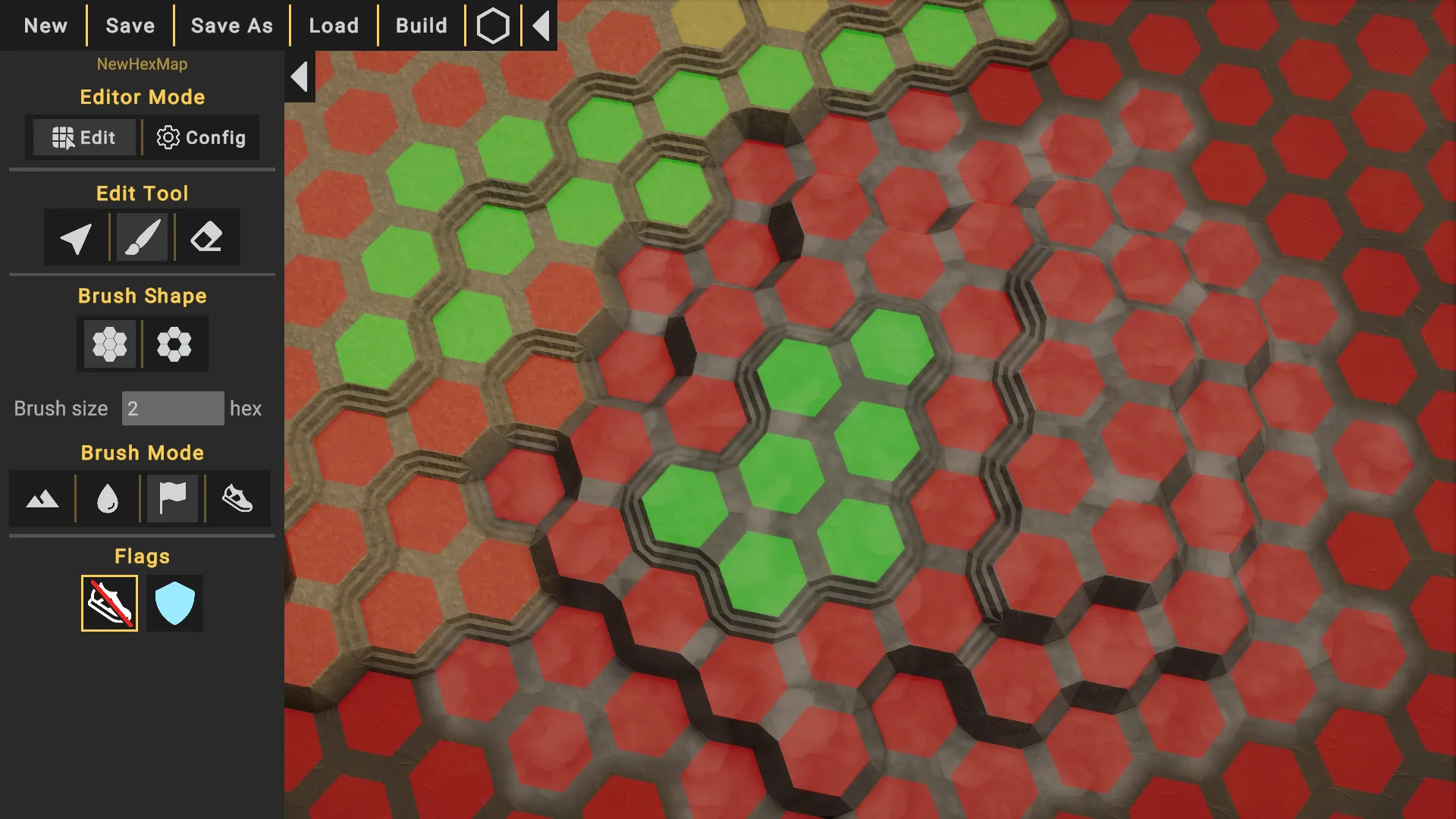 Flag brush mode. Red tiles are hexes where selected flag is not set and green ones have the flag set.